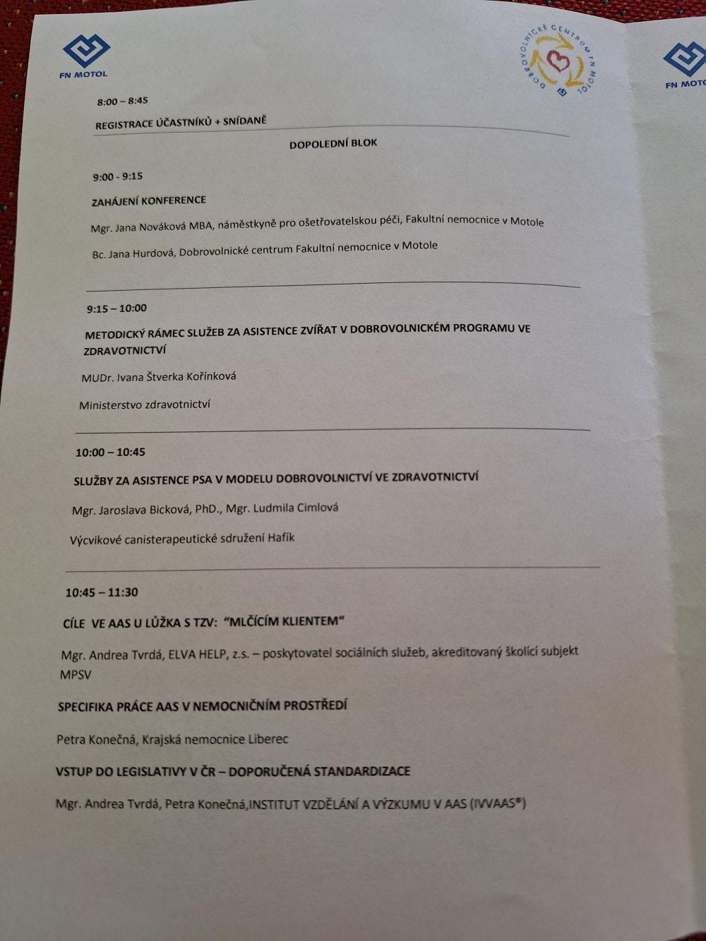 Děkujeme @Dobrovolnické centrum FN Motol za pozvání na mimořádně povedenou a inspirativní konferenci s názvem "Vliv zooterapie (služeb za asistence zvířat) ve zdravotnických zařízeních".