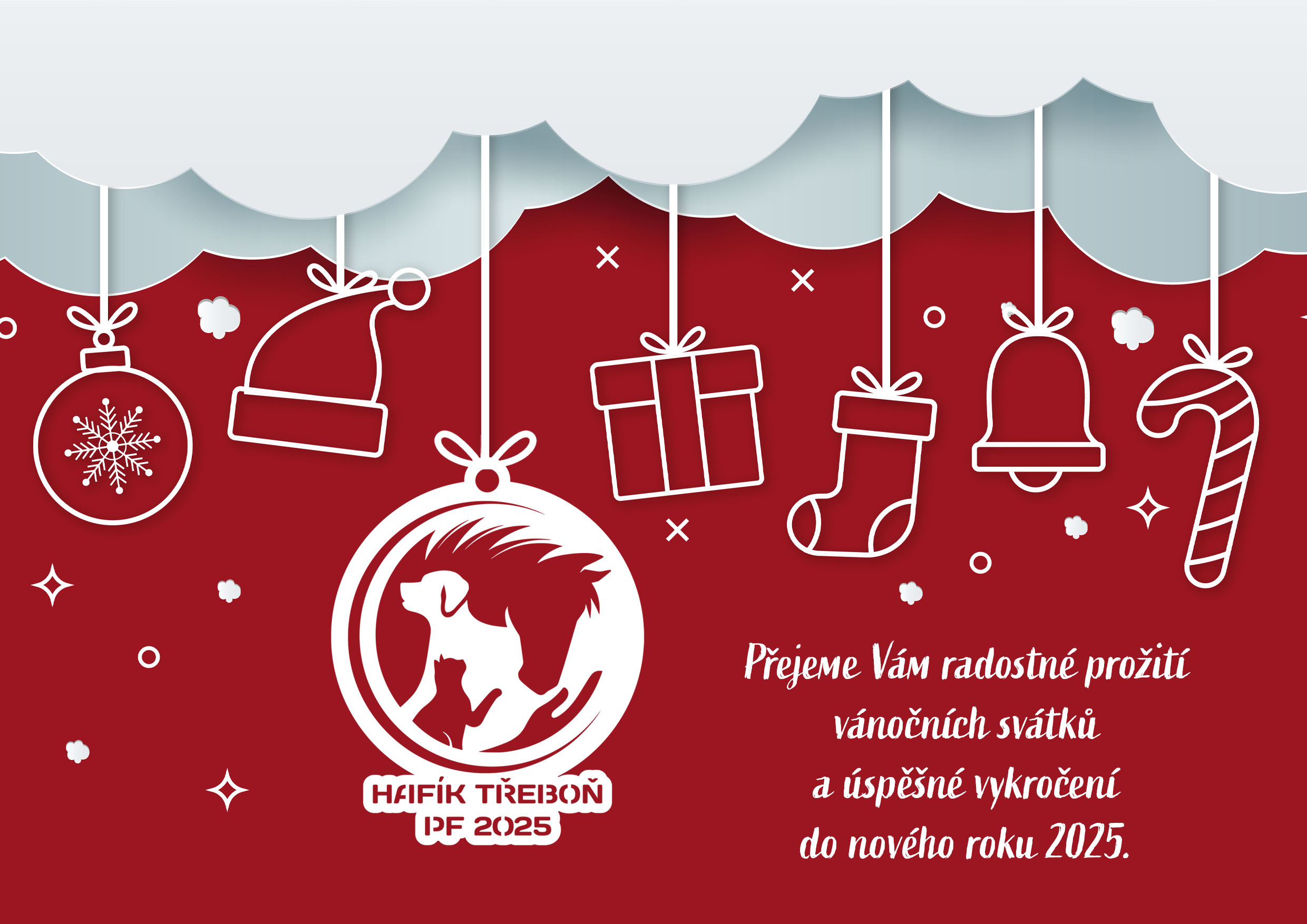 Příjemné prožití vánočních svátků a do nového roku 2024 pevné zdraví, dobré přátele, mnoho úspěchů a spoustu lásky Vám přejí všichni z Výcvikového canisterapeutického sdružení Hafík, z.s. se svými čtyřnohými kamarády.