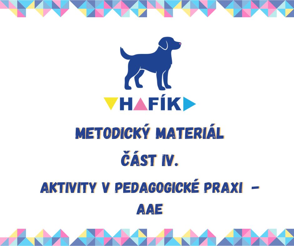 Čtvrtá část metodického materiálu je sestavena na téma Aktivity v pedagogické praci - AAE, kde najdete teoretický úvod a 21 různých nápadů na aktivity na 30 stránkách. Forma materiálu je elektronická (pdf).