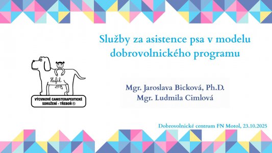 Téma naší přednášky: "Služby za asistence psa v modelu dobrovolnictví ve zdravotnictví"