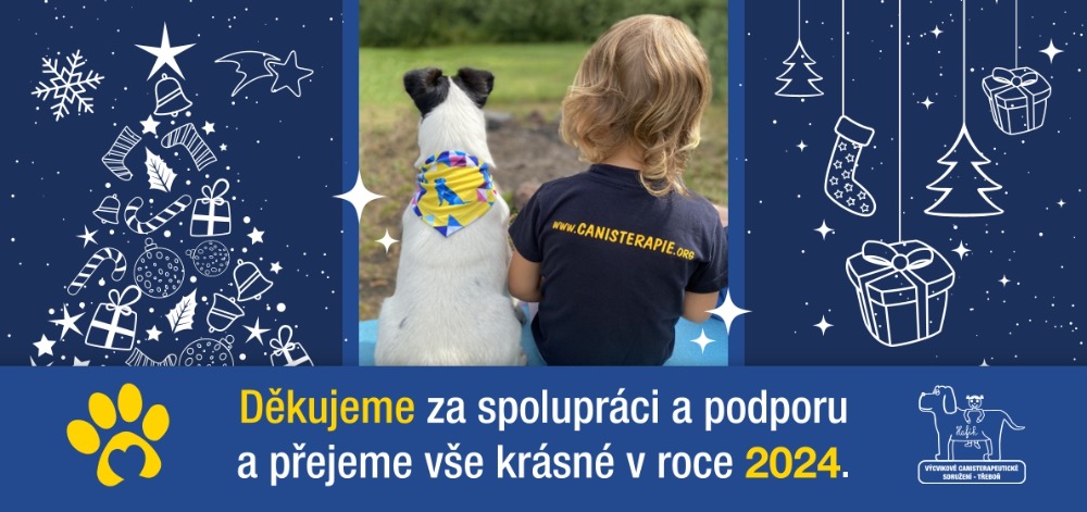 Příjemné prožití vánočních svátků a do nového roku 2024 především pevné zdraví, dobré přátele, mnoho úspěchů a spoustu lásky Vám přejí všichni z Výcvikového canisterapeutického sdružení Hafík, z.s. se svými čtyřnohými kamarády.