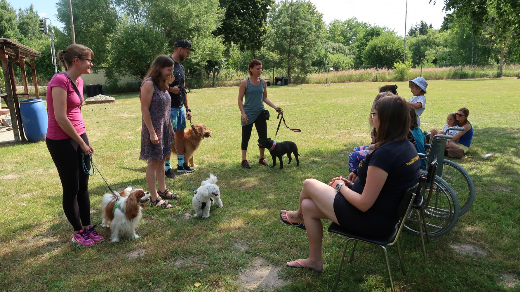 V termínu od 4. do 9. července 2023 proběhl v pořadí již dvacátý druhý výcvik terapeutických týmů. Obecně se výcvik skládal z praktických cvičení a modelových situací, včetně dvou nasazení přímo v „terénu“ (3. Mateřská škola Třeboň a Chráněné bydlení Naplno Lomnice nad Lužnicí) a z teoretické části. Na konci celého výcviku skládali dobrovolníci teoretickou zkoušku a následně jako tým (dobrovolník se svým psem) zkoušku praktickou. Letošního výcviku se zúčastnilo 9 týmů. Výcvik nakonec zdárně, bez větších problémů, ukončilo 7 týmů. Všem týmům, které úspěšně zakončily výcvik splněním zkoušek, moc gratulujeme a těšíme se na další příjemnou spolupráci.