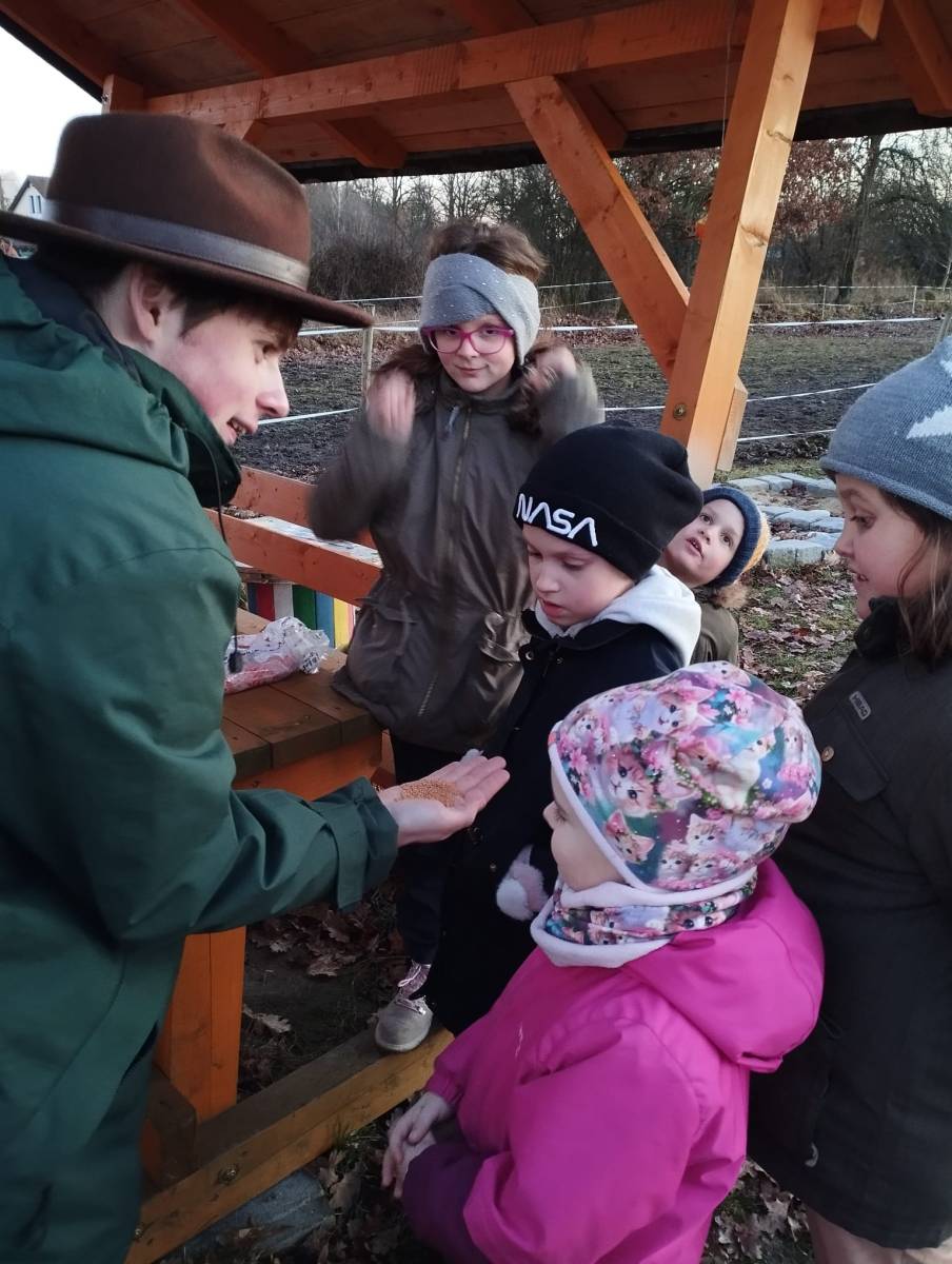 Na jednom zimním setkání našeho přírodovědného kroužku jsme se s dětmi ponořili do kouzelné atmosféry zasněžené krajiny ❄️🌲. Ve sněhu vznikaly hravé příběhy se zvířátky a nedaleký dub doslova ožil, když mu děti s nadšením vytvořily veselý obličej. Společně jsme se vydali i do našeho malého zookoutku kousek za vraty 🐐🐓, kde na nás čekalo milé seznámení s novými přírůstky 🐣.